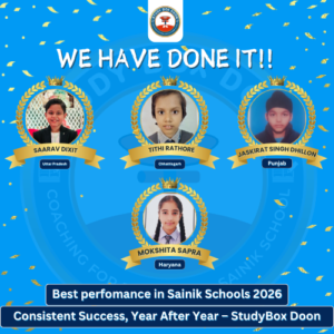 With years of experience in Sainik School coaching and RMS coaching, StudyBox Doon has helped hundreds of students secure admission in Sainik Schools, RMS, and RIMC through high success rates and top ranks. Our preparation system includes live online classes, recorded lectures, weekly test series, personalized mentoring, doubt-solving sessions, and parent-teacher meetings (PTM).
